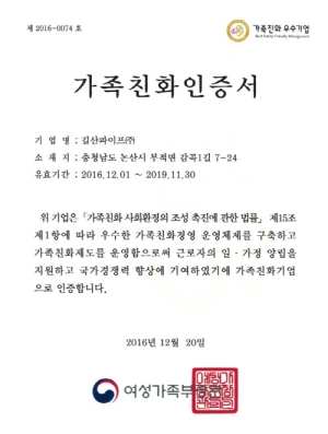 가족친화 인증서 획득
